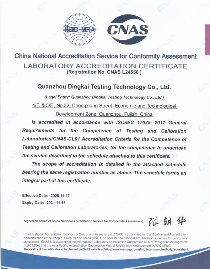 Consumer Product Testingquanzhou dingkai CNAS2026-04-21Details Training and Technical Services2026-04-21Details Training and Technical ServicesCTT-Fujian-CPSC Certificate2026-04-21Details Training and Technical Services2026-04-21Details Consumer Product TestingJewelry Recall Notification - Report1-20262026-04-10Details Consumer Product TestingToy Products Recall Notifications-2026 report 022026-03-31Details