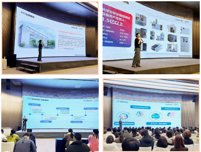 随后,CTT中鼎检测专家做了“SHEIN时尚首饰,CTT守护您的爆单”主题分享,聚焦首饰产品合规痛点,从欧洲市场准入要求、合规细则、项目的高风险材料及检测要点等核心维度进行了深度解析。依托与SHEIN平台的深度协同及对标准的透彻理解,专家还重点分享了针对新品和预打造的爆品进行风险的精准预判和管控,将风险控制在设计选材生产阶段。同时,针对商家在SHEIN系统检测申请流程中遇到的痛点,提供了具体的优化解决方案,为产品顺利合规保驾护航。
