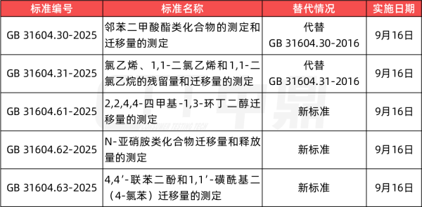 2025年3月27日,国家卫生健康委与市场监管总局联合发布2025年第2号公告,正式颁布50项新食品安全国家标准和9项修改单。其中包括5项食品接触材料测试标准,该5项标准已于9月16日正式实施。