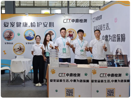 展会现场,中鼎检测的展位上吸引了众多参展商与专业观众驻足。中鼎检测的技术专家团队就各类宠物食品及用品的合规咨询提供详尽解答及质量合规建议,与行业伙伴建立深度联结。
