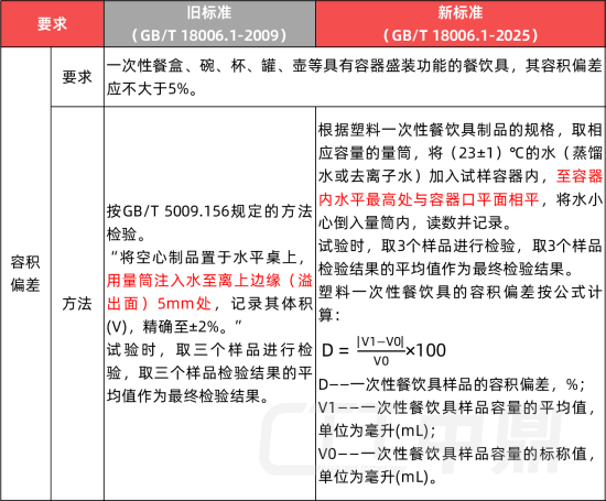 容积偏差是本次修订中变化较为明显的项目之一。与旧版标准相比,新版标准在容积测定方法上进行了实质性调整,由原先注水至离容器上边缘5mm处,调整为注水至容器口平面持平进行测定。由于测定方式发生变化,部分产品在新版方法下测得的容积结果可能与旧版存在差异。