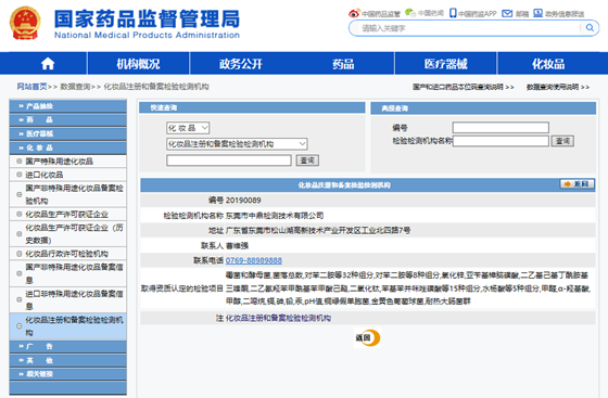 中鼎检测技术有限公司(以下简称“中鼎检测”)于2019年10月29日通过国家药监局化妆品注册和备案检验信息管理系统审核,成为化妆品注册和备案检验检测机构之一,具备承担国产非特殊用途化妆品备案检验工作的资质。